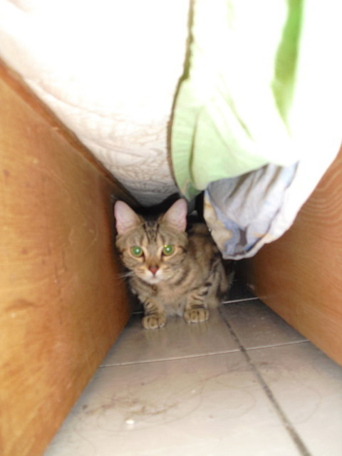 貓咪很愛躲在很黑又很暗的小空間裡面,他們才有安全感