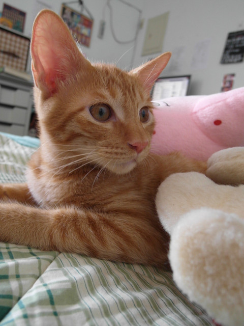 像是小橘貓他會在我快睡醒的時候趴在我胸口前看我睡覺,不知道他是在吸我陽氣還是怎麼樣的!