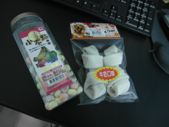 禮拜六去逢甲買了牛奶口味的狗骨頭(NT$70) 給summer