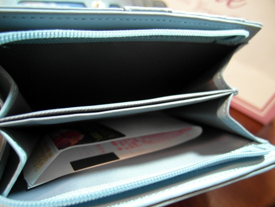 我習慣一個放零錢、中間的隔層可能會放超商的集點卡或是搭高鐵的票或者平安符之類的、另外一層就是放一天中消費的發票