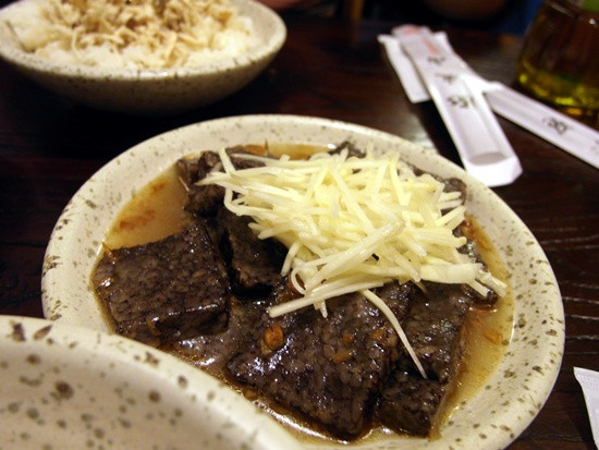 但麻油香配上薑絲讓米血非常的入味 所以除了些太薄之外 我還是覺得她還算美味的一盤小菜拉