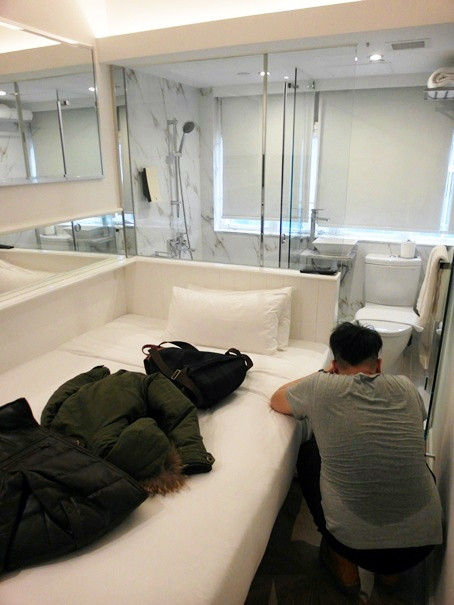 第一次床頭後面就是透明的浴室,感覺好怪