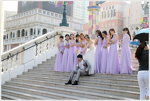 在進去水舞間看show前, 在對面的威尼斯人看到有新人在拍婚紗照~