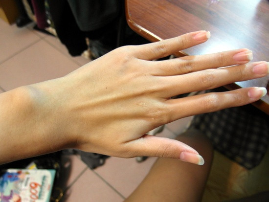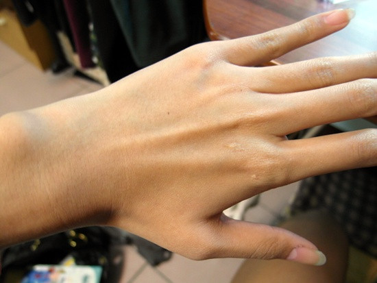 將精華液推開按摩吸收後 明顯的感覺的手背比第一張透白很多