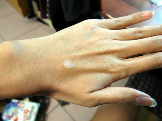 精華液薇半透明的乳白色 比一般的化妝水還要濃稠一點 但卻很好推開